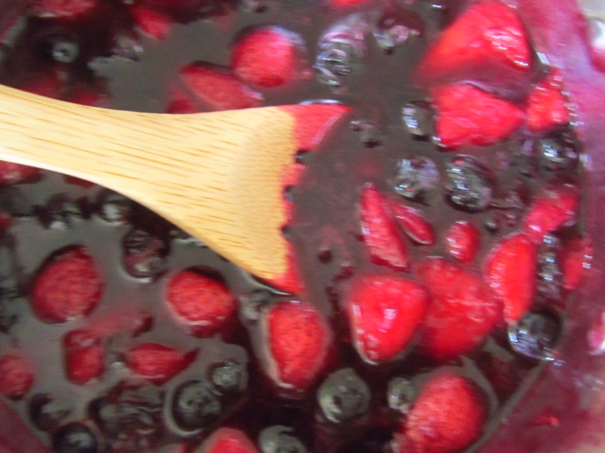 Tasha’s recipe for mixed summer berry compote: Gently simmer 1 pint fresh blueberries and 1/2 cup fresh strawberries in a mixture of lemon zest, pomegranate juice, 1 vanilla bean, and lemon juice; add juice until berries are submerged; cook until berries burst and release juices; add raw honey and a pinch of salt for flavor balance.