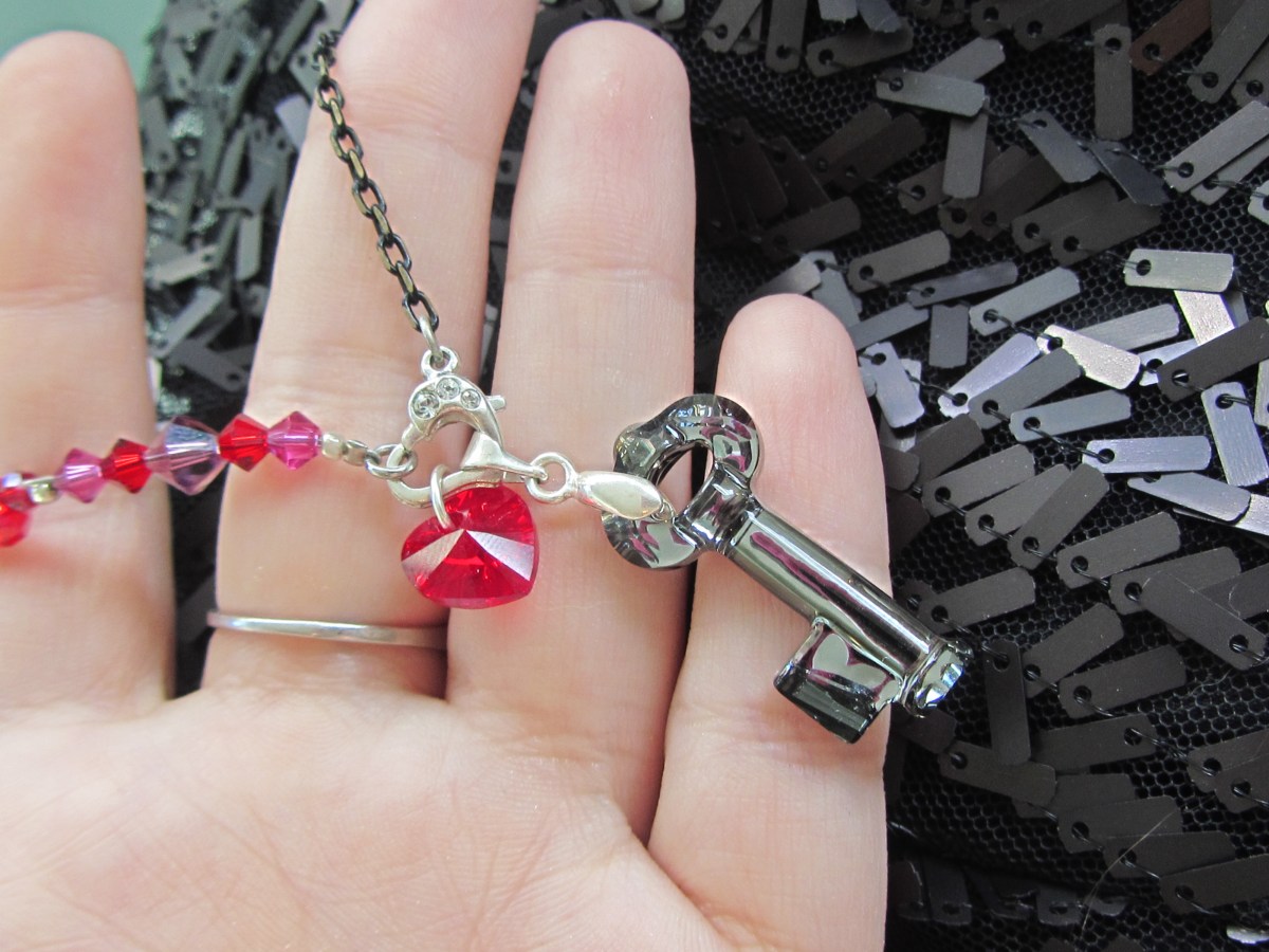IMG_4979 Sep10 Published at 4000 × 3000 in “Sexy Sweetheart” Necklace & Bracelet Design – Using COLOR to Convey Themes & Tell A Story ← Previous Next → After the charms have been layered, an 8″ crystal insert strand (pomegranate, bold style) is connected to the clasp.