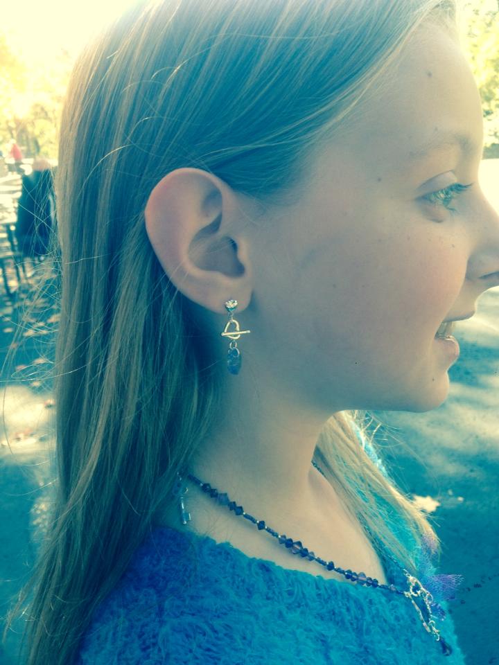 9 year old Emily shows off her impressive design skills with her new Chain Reactions modular jewelry set (delicate base set in nightshade purple, with custom charms) – even inventing another creative technique for attaching charms!