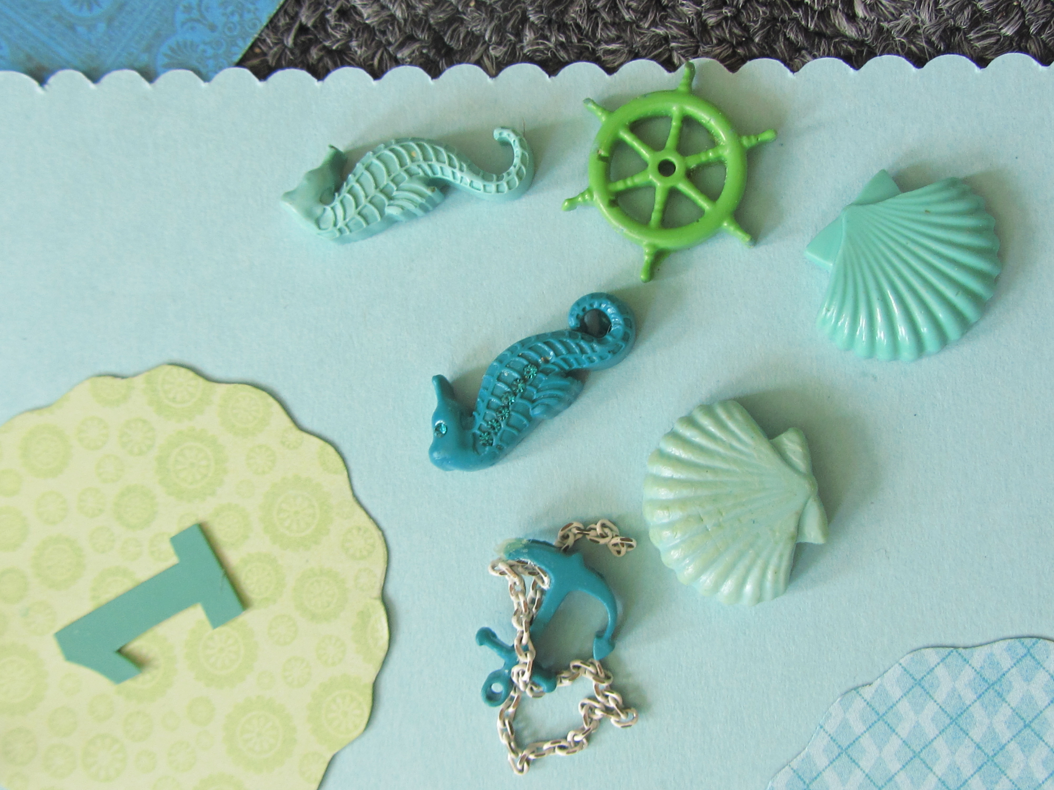 If desired, you can mold epoxy clay shapes to attach to your card-holder. I made these awhile ago. Remeber to allow them to dry before attaching them. You can also use epoxy clay to attach your clothespin, if desired.