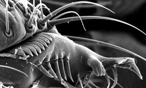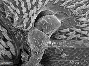 After MUCH thought I’ve abandoned visual for tactile- I will create a mask inspired by insect exoskeletons, with moveable ‘sensory hairs’ pressed against the face. Insects are covered with numerous barbs/hairs called setae, some of which have sensory purposes. Their exoskeleton is formed out of a resin-like protein called chitin. When imaged with the scanning electron microscope, the exoskeleton can look as if made of opaque plastic- because of this I’ve been dying to 3D print forms inspired by electron microscopy.