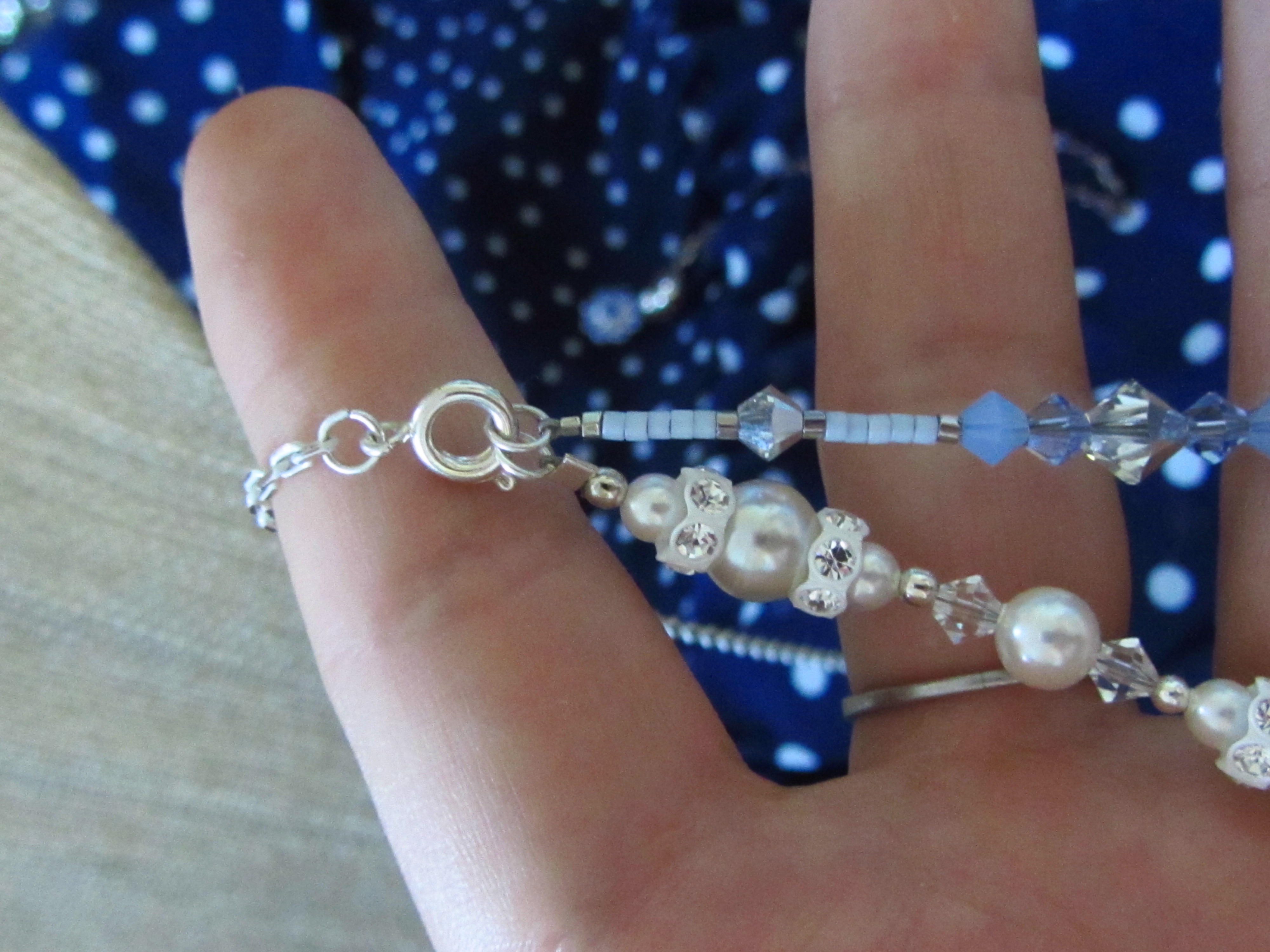 IMG_4704_2223 Aug30 Published at 4000 × 3000 Next, the 7.5″ pearl insert strand is layered onto the same white base strand.