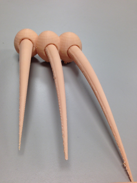 The flesh colored ABS I bought is a little unnerving- I thought it would be shiny but it’s not so it actually kind of looks like skin. An insect exoskeleton is rigid and armor-like, (and sheer, shiny) so I thought it would be interesting to have an exoskeleton colored the same way as soft skin- now I’m not so sure, maybe a translucent filament would be better.